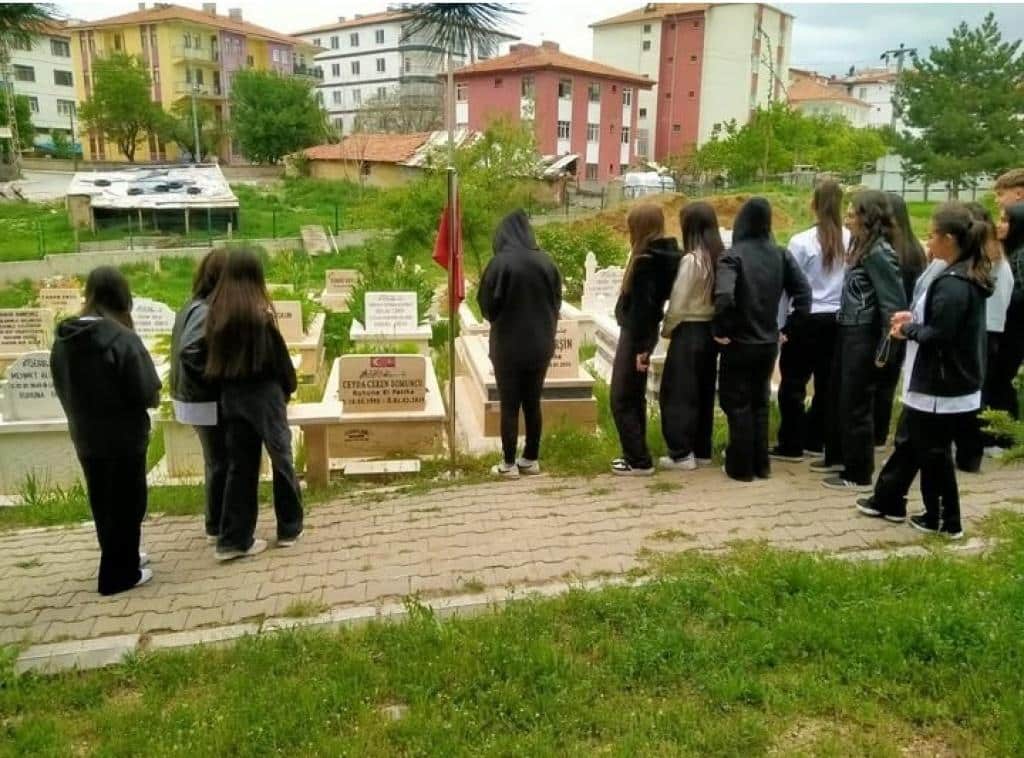9A sınıfı öğrencilerimizle bu hafta vatan ve milletimiz uğruna canlarını feda eden şehitlerimizin de bulunduğu Akyurt Merkez Mezarlığı ziyaret edildi. Ziyaret boyunca, öğrencilerimizin gözlerinde bir bilinç oluştu. Bugünün huzuru, dünkü fedakarlığın eseri olduğunu daha iyi anladılar. Şehitlerimizin emanetine sahip çıkmanın; iyi insan olmakla, ülkesini sevmekle ve birliğimizi korumakla başladığını fark ettiler.